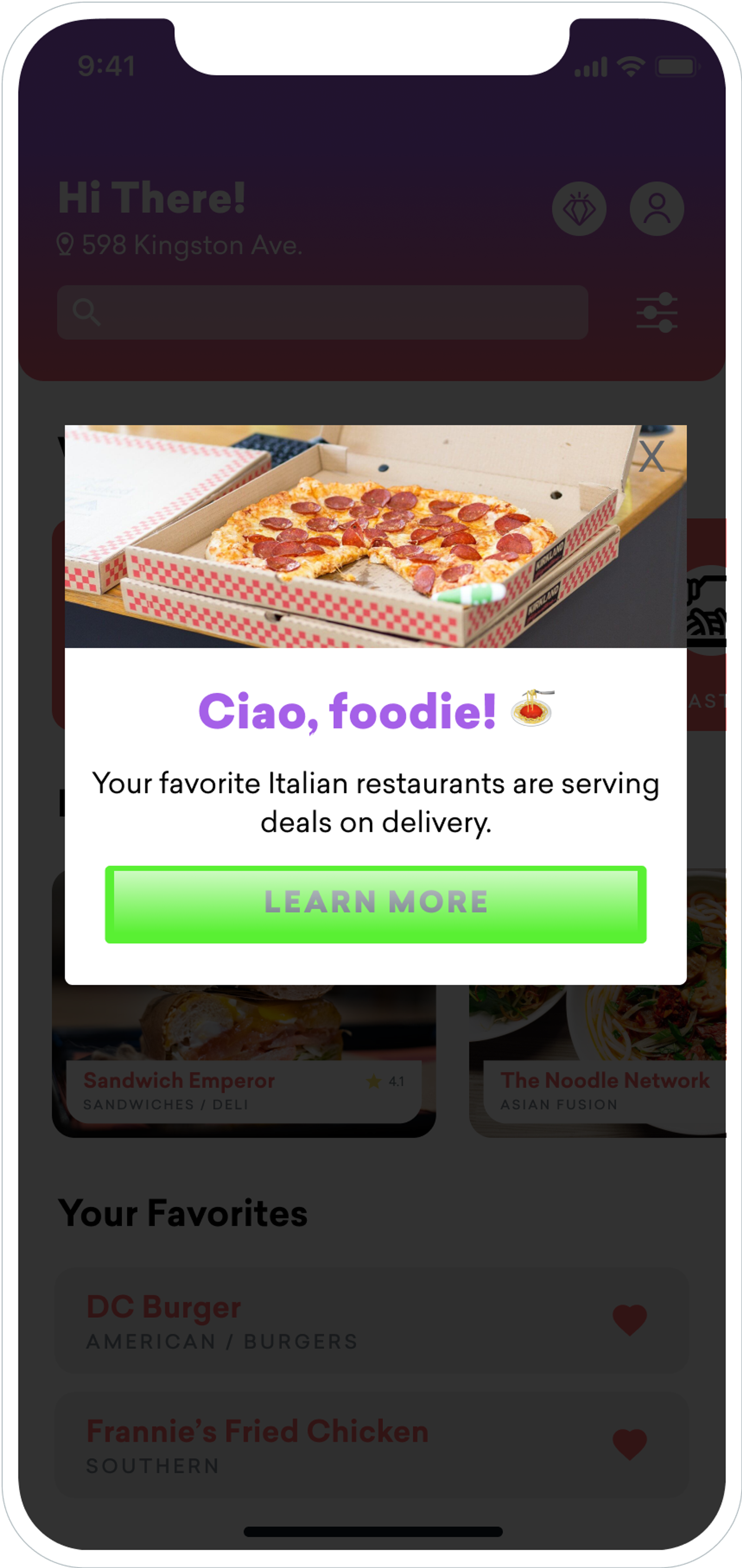 The food delivery app could then send those Italian food fans an in-app message campaign that highlights local Italian restaurants:
